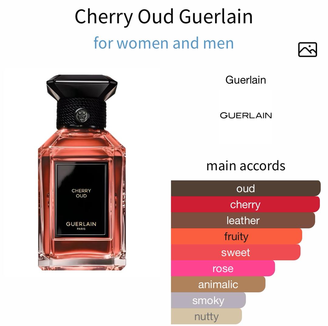 Cherry Oud Guerlain is a bold and captivating perfume oil impression that blends luscious sweetness with deep, smoky sophistication. It opens with a rich burst of dark cherry—smooth, juicy, and slightly tart—before unfolding into a warm heart where subtle florals and woods begin to emerge.