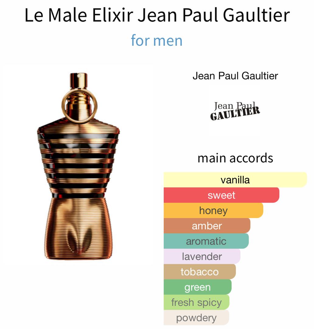 Le Male Elixir is a rich, seductive fragrance that amplifies the signature Le Male DNA with deeper sweetness, warm spice, and smooth amber intensity. Bold and modern, it delivers a powerful masculine presence that feels luxurious, confident, and highly addictive.