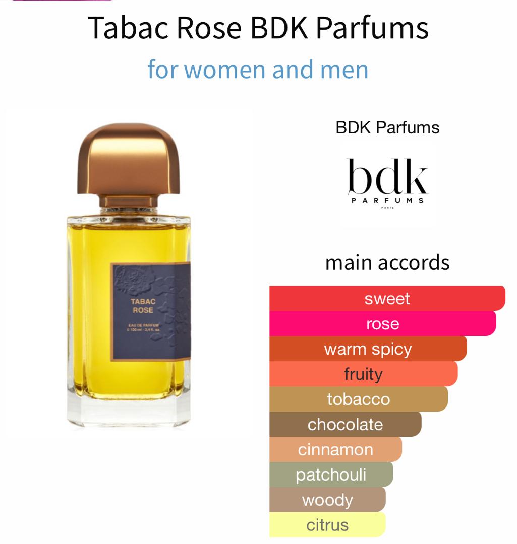 Tabac Rose by BDK Parfums is a bold, opulent fragrance that blends rich honeyed tobacco, lush rose, and warm amber into a deeply sensual and luxurious scent. Powerful and elegant, it delivers a statement presence that feels both refined and addictive.